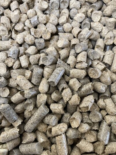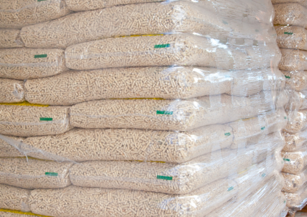 Energipiller af fiber i sække af 15 kg, 900 kg i alt.