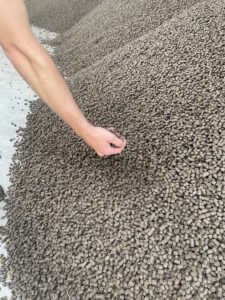 Når biogasanlægget har udnyttet energipotentialet i biomassen, modtager vi det fiberholdige restprodukt, som vi omdanner til nye produkter, blandt andet brændselspiller af fiber.